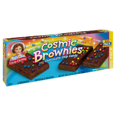 Cosmic Brownies | Little Debbie Check! Covered in delicious fudge icing, chewy Little Debbie ® Cosmic Brownies feature a sprinkling of rainbow-colored, candy-coated chocolate chips for a surprise crunch and an all-out chocolate experience you'll love. A favorite goody to bring on picnics, pass out to classmates, or enjoy with a big scoop of ice cream, Cosmic Brownies will ...