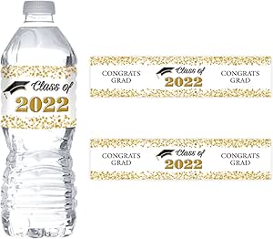 MonMon & Craft Class of 2022 Water Bottle Labels Stickers / 2022 Graduation Bottle Wrappers / 2022 Graduation Party Water Bottle Labels Supplies White ...