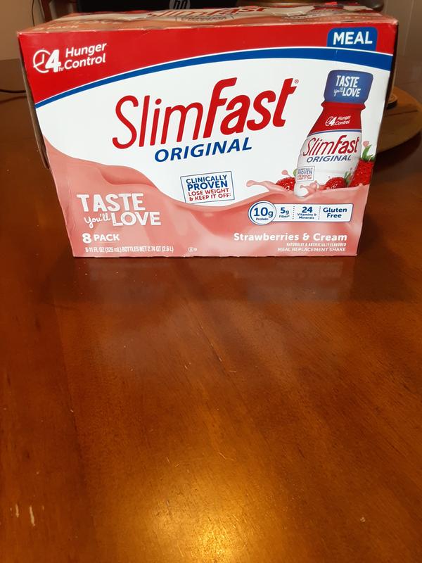 Amazon.com: SlimFast Advanced Nutrition High Protein Meal Replacement ... SlimFast Meal Replacement Shake, Original Strawberries & Cream, 10g of Ready to Drink Protein, 11 Fl. Oz Bottle, 4 Count (Pack of 3) $29.97 ($0.78/Ounce) SlimFast Meal Replacement Powder, Original Rich Chocolate Royale, Weight Loss Shake Mix, 10g of Protein, 34 Servings $13.98 ($0.45/Ounce)