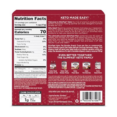 Amazon.com: SlimFast Keto Meal Replacement Shake - Creamy Milk ... About this item . MEAL REPLACEMENT SHAKE: SlimFast Keto Meal Replacement Shakes are the perfect diet friendly beverage. Each bottle is packed with 14g of Fat and 8g of Protein to maintain your Keto status and keep you full for hours with a decadent blend of rich, creamy milk chocolate flavor to satisfy your sugar cravings.