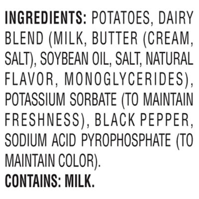 Bob Evans Mashed Potatoes Garlic - Giant Food Potatoes, Dairy Blend (Milk, Butter [Cream, Salt], Soybean Oil And/or Canola Oil, Salt, Natural Flavor, Monoglycerides), Water, Contains Less Than 2% Of ...