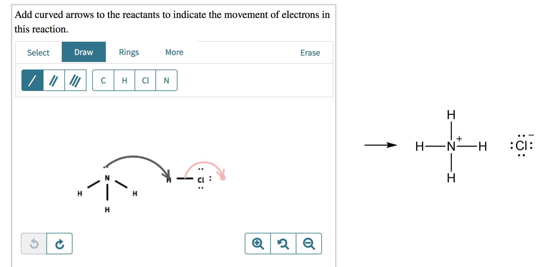 Add curved arrows to the reactants to indicate the movement of electrons in this reaction.