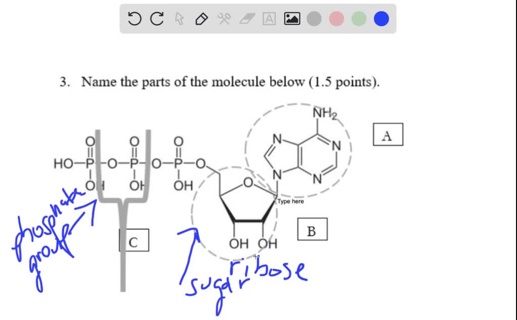 Solved > Examine the diagram of the ATP molecule below.:298648 ... Examine the diagram of the ATP molecule below. Identify each part of the ATP molecule (numbers 1-4) and explain how ATP stores energy. Please Type Answer and No Plagiarism