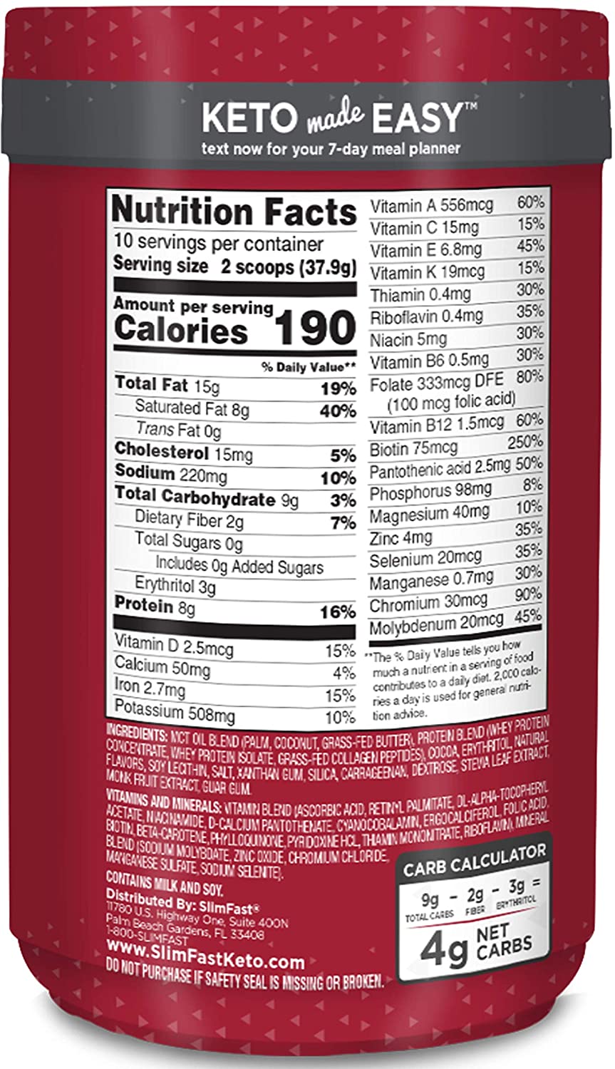 SlimFast Keto Meal Replacement Powder, Fudge Brownie Batter, Low Carb ... The SlimFast Plan is clinically proven to help you lose weight fast and keep it off! Not a low-calorie food. **Based on clinical studies of the overall SlimFast 1-2-3 Plan (a calorie-controlled diet, regular exercise and plenty of fluids), demonstrating fast and sustained weight loss. Individual results may vary.
