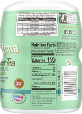 AriZona Iced Tea - Green Tea with Honey & Ginseng | Real Sugar - Shop ... AriZona Iced Tea - Green Tea with Honey & Ginseng | Real Sugar - Shop AriZona. Description. An AriZona classic, we're proud to say is America's best-selling green tea. Enjoy our 100% natural AriZona Green Tea iced or served up hot, with just the right amount of ginseng, honey and cane sugar. Reflect on all that goodness, delicious as ever.
