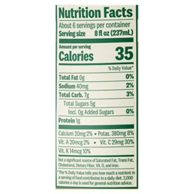 Suja Uber Greens Juice Nutrition Facts - Eat This Much ... carbs, fat, protein, fiber, cholesterol, and more for Suja Uber Greens Juice . ... 8g Carbs. (8g net carbs). 0g Fat. 2g Protein. No price info. serving ... Suja Organic Cold-Pressed Über Greens Vegetable & Fruit Juice ... Suja Organic Cold-Pressed Über Greens Vegetable & Fruit Juice Drink, 12 fl oz ; <50kcal. Calories ; 0g. Total Fat ; <5g. Total Sugars ; <65mg. Sodium. Suja Life LLC - Uber Greens Vegetable & Fruit Juice Drink Suja Life LLC - Uber Greens Vegetable & Fruit Juice Drink · Calories 50 2% DV · Protein 2g 4% DV · Carbs 10g 3% DV · Fat 0g 0% DV · Fiber 0g 0% DV · Sugar 6g 12% DV.